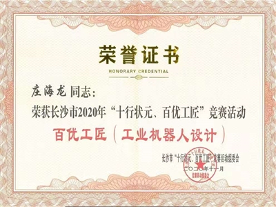 11月28日,長(zhǎng)沙市總工會(huì)在市會(huì)議中心召開(kāi)長(zhǎng)沙市2020年“十行狀元、百優(yōu)工匠”技能競(jìng)賽活動(dòng)總結(jié)表彰會(huì)。長(zhǎng)泰公司人工智能研究部莊海龍、智能裝備事業(yè)部劉銀輝組成的工業(yè)機(jī)器人設(shè)計(jì)小組被授予“百優(yōu)工匠”榮譽(yù)稱(chēng)號(hào)!
