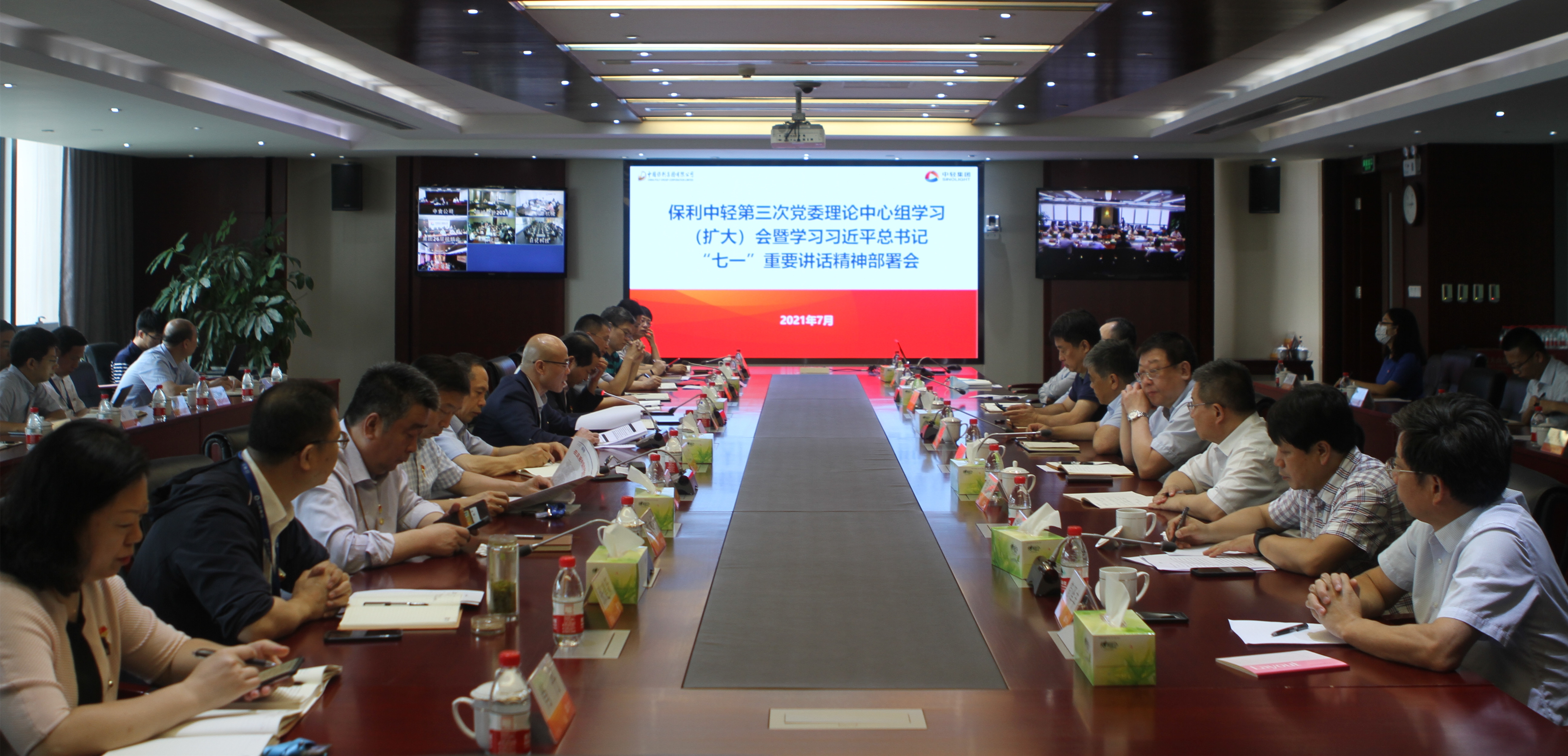 7月21日,保利中輕召開2021年度第三次黨委理論中心組學(xué)習(xí)(擴(kuò)大)會(huì)暨學(xué)習(xí)習(xí)近平總書記“七一”重要講話精神部署會(huì)。會(huì)議的主題是:深入學(xué)習(xí)貫徹習(xí)近平總書記“七一”重要講話精神。會(huì)上,學(xué)習(xí)了習(xí)近平總書記“七一”重要講話、習(xí)近平總書記在青海調(diào)研時(shí)的重要講話以及《新征程面對(duì)面》理論讀本;傳達(dá)了《保利中輕深入學(xué)習(xí)貫徹習(xí)近平總書記“七一”重要講話精神實(shí)施方案》,對(duì)學(xué)習(xí)習(xí)近平總書記重要講話進(jìn)行安排部署;傳達(dá)了保利集團(tuán)“十四五”發(fā)展戰(zhàn)略與規(guī)劃細(xì)化明確思路。保利中輕黨委書記、董事長(zhǎng)張萬(wàn)順主持會(huì)議并作總結(jié)講話,領(lǐng)導(dǎo)班子成員、各子企業(yè)黨委書記圍繞學(xué)習(xí)貫徹習(xí)近平總書記“七一”重要講話精神交流學(xué)習(xí)體會(huì)。