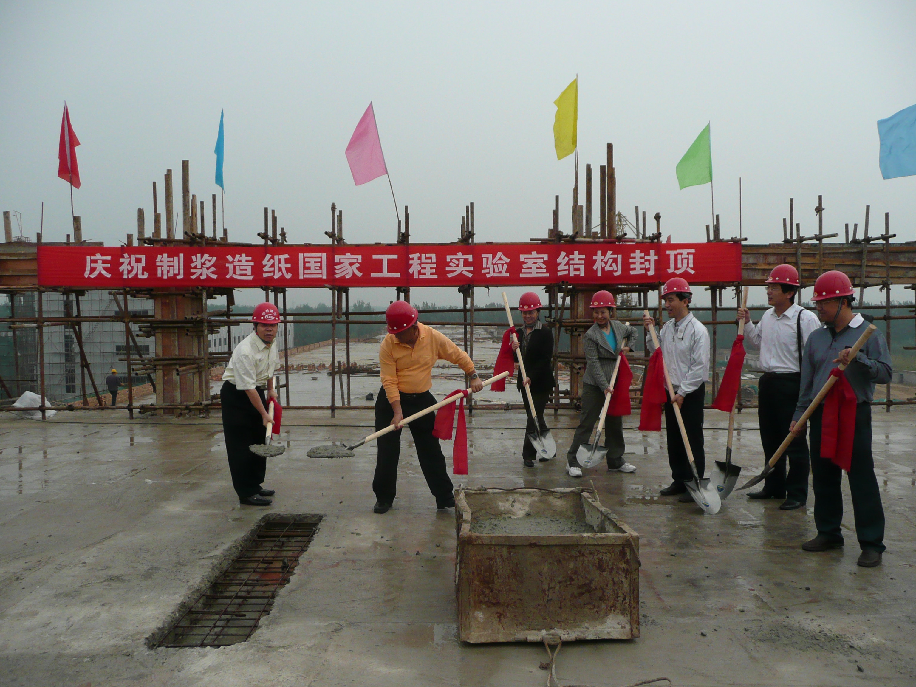 9月26日,中國(guó)制漿造紙研究院制漿造紙國(guó)家工程實(shí)驗(yàn)室項(xiàng)目主體結(jié)構(gòu)封頂儀式在河北省廊坊市舉行,陳鄂生總經(jīng)理、曹振雷副總經(jīng)理出席了該儀式。