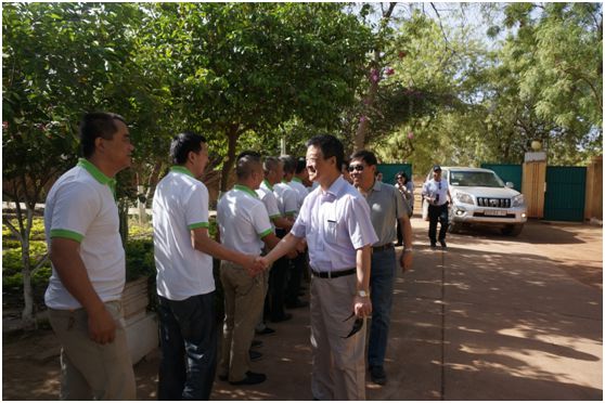 考察調研時,俞海星一行先后看望了中輕對外馬里代表處、新糖聯(lián)、老糖聯(lián)杜廠和西廠、武漢公司項目部及海誠貿易物流公司等駐地或營地的干部和員工,對他們長期駐扎艱苦的一線表示親切的慰問,對他們所付出的辛勤勞動和作出的貢獻表示了衷心的感謝,并送去了慰問品。